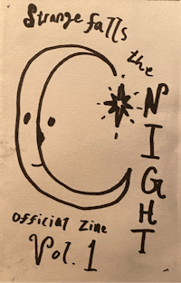 Fun small zine! 8 pages full of fun! This zine is kinda like the original “Strange Falls The Night Zine” (the one above this one) but more focused and less crazy. Available only in chicken scratch font in the living night press shop!
